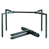 (More customer reviews)Very sturdy stand. My only negative comment about it is that the cross bar is not adjustable to adjust the width, which makes it useless for most keyboards. Should work for an 88 key electronic piano, though. For shorter keyboards, the stand would extend out quite a bit beyond the keyboard. Would work great for a large cabinet speaker.